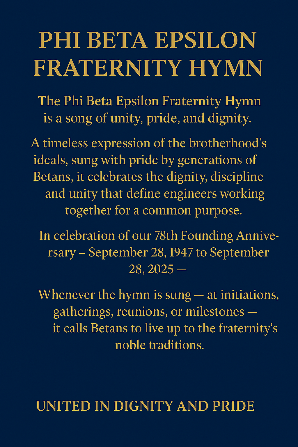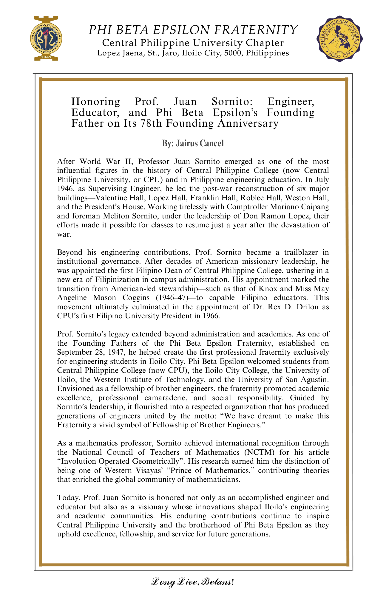 Congratulations to the CPU Betans on your 78th Founding Anniversary, the Installation of New Members, and the Induction of New Officers.